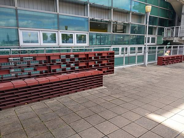 走出門後的左手邊,有造型似紅磚的椅子供人休息