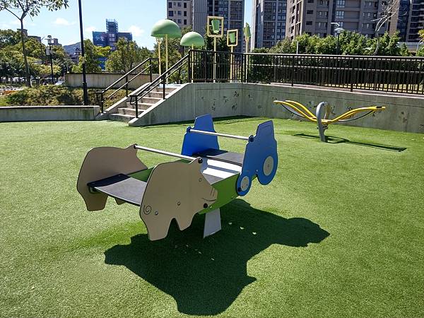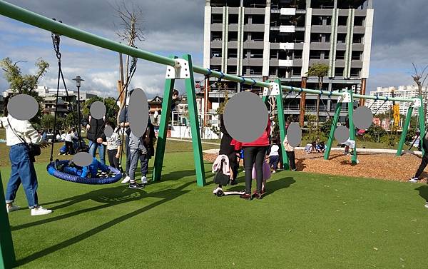 一樣有共融盪鞦韆,也有玩沙池,也有彈跳床