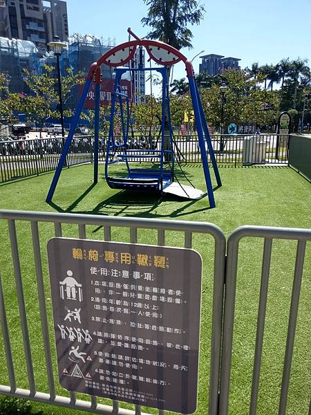 在水圳遊戲區旁也有專為坐輪椅的孩子所設的盪鞦韆