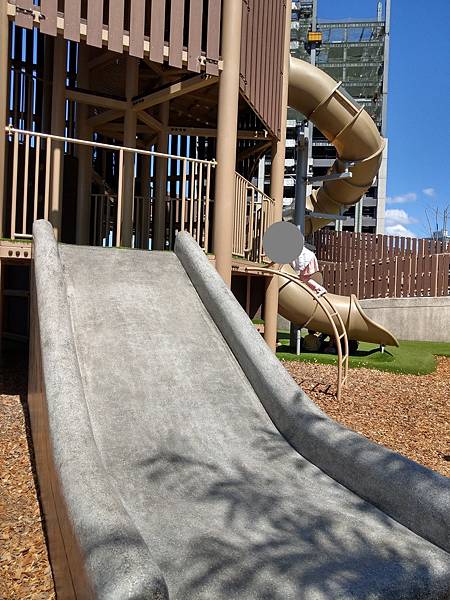 這裡也有約半樓高的管狀及石子溜滑梯可以讓小小孩玩