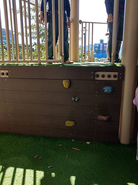 若是加上大人也上去(陪小小孩的家長),而大人身上又有背包時,孩子就更不容易過